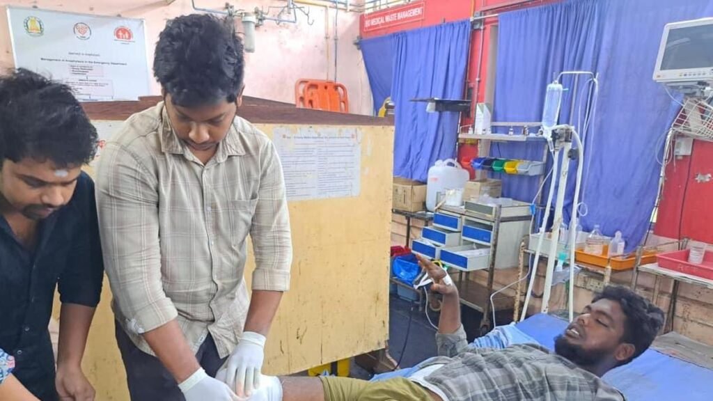 23 नवंबर, 2025 को घुटने में गोली लगने वाले आरोपी युवक नवीन का इलाज चिदम्बरम गवर्नमेंट जनरल हॉस्पिटल में किया