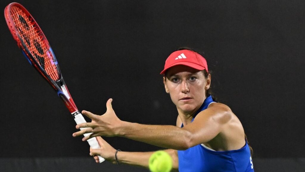 यहां एसएम कृष्णा टेनिस स्टेडियम में बिली जीन किंग कप ग्रुप ‘जी’ प्ले-ऑफ में काजा जुवान और तमारा जिदानसेक का