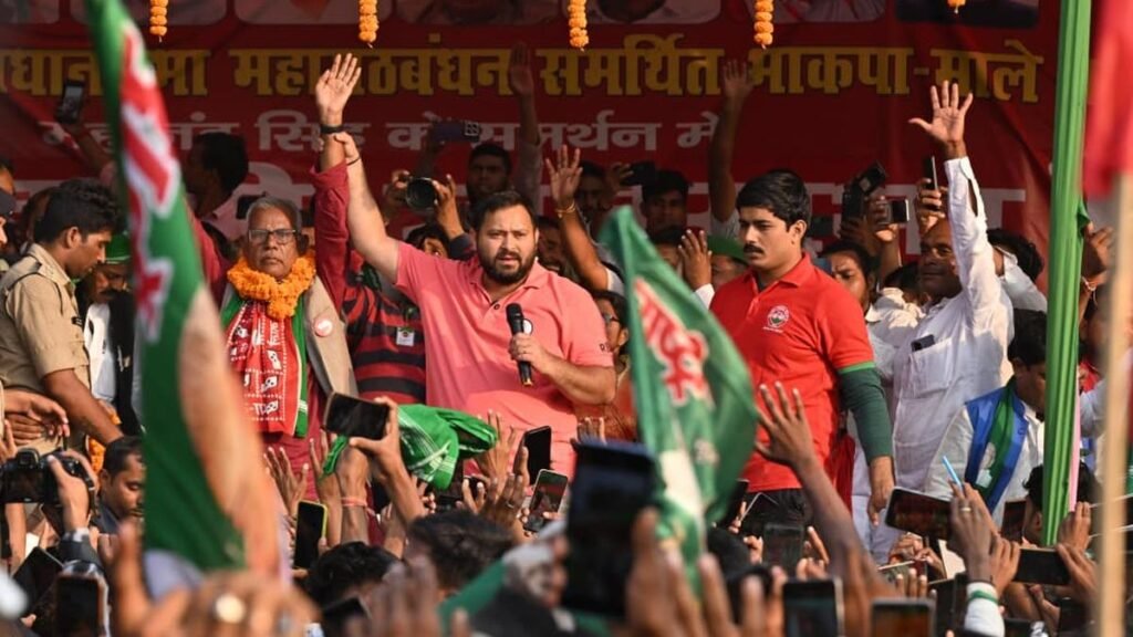रविवार, 9 नवंबर, 2025 को बिहार के अरवल जिले में चुनावी रैली के दौरान राजद नेता तेजस्वी यादव। फोटो साभार: