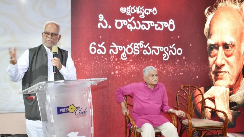 सुप्रीम कोर्ट के न्यायाधीश न्यायमूर्ति बी. सुदर्शन रेड्डी 8 नवंबर, 2025 को हैदराबाद के प्रेस क्लब में “मास मीडिया और