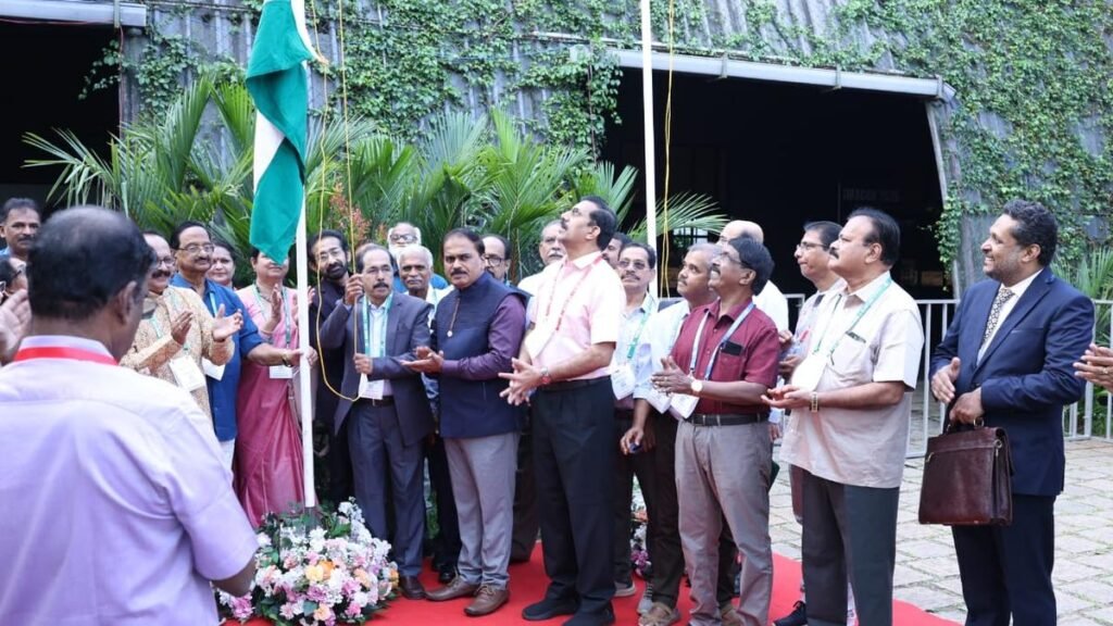 केए श्रीविलासन, आईएमए राज्य अध्यक्ष, 8 नवंबर को कोझिकोड में आईएमए राज्य सम्मेलन के उद्घाटन के अवसर पर राष्ट्रीय ध्वज