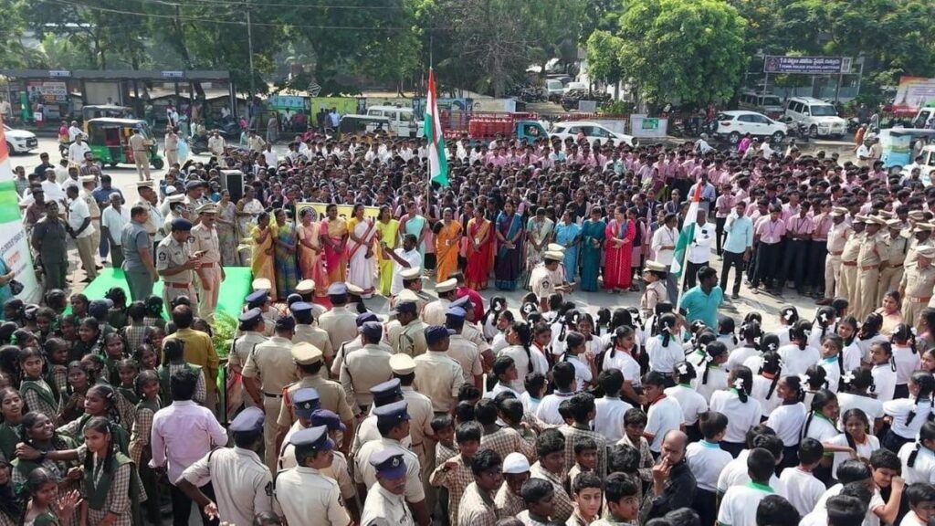 शुक्रवार को चित्तूर के गांधी बोम्मा सेंटर में पुलिस कर्मियों और छात्रों ने राष्ट्रीय गीत वंदे मातरम गाया। | फोटो