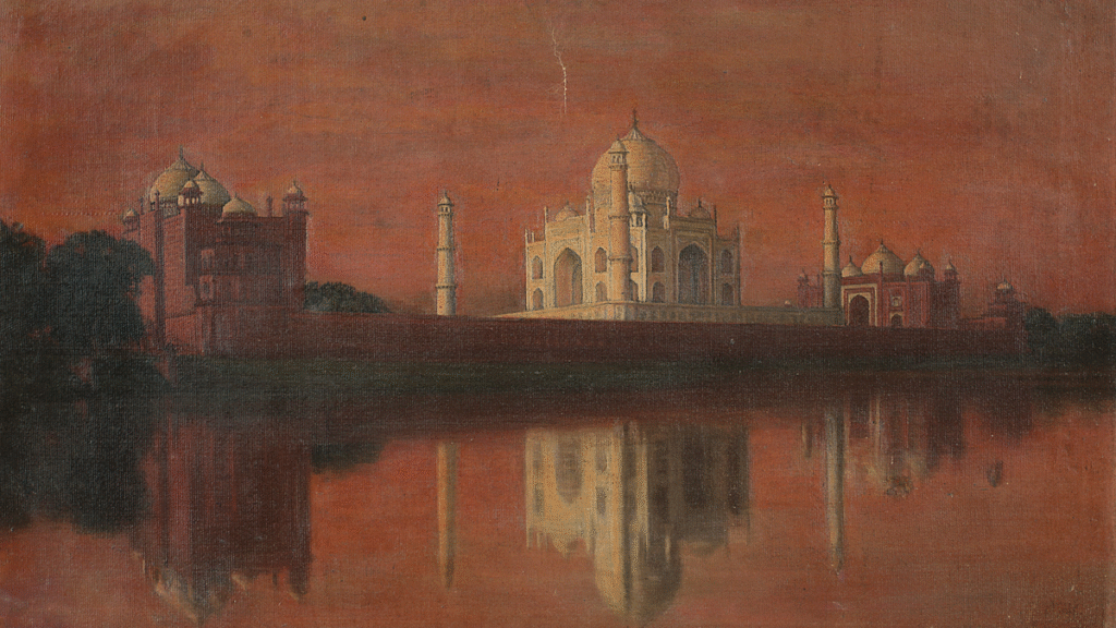 दरवाज़ा-ए-रौज़ा (भव्य प्रवेश द्वार) से ताज महल का पहला अबाधित दृश्य भारत की सबसे अधिक मान्यता प्राप्त छवियों में से