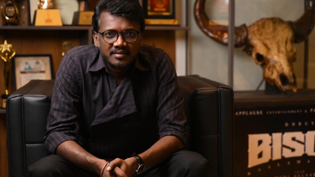 मशहूर फिल्म निर्माता मारी सेल्वराज के चेन्नई कार्यालय में एक सूअर का बच्चा पकड़े हुए और अपनी मां और पिता
