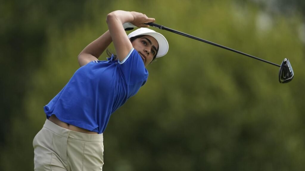 एक्शन में दीक्षा डागर की फ़ाइल तस्वीर। | फोटो साभार: एपी भारतीय गोल्फर दीक्षा डागर ने अंतिम राउंड में शानदार
