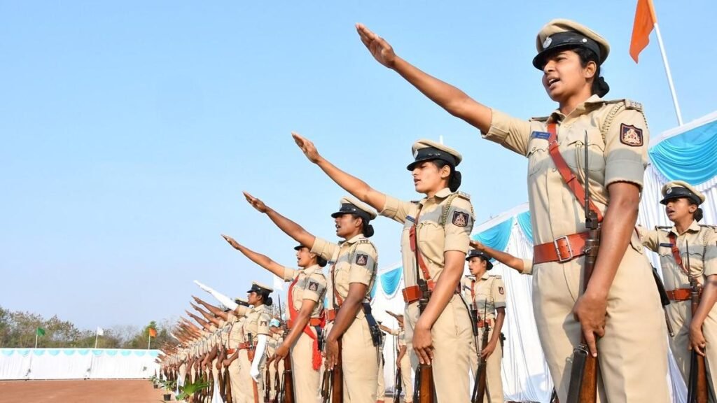 कलबुर्गी में पुलिस प्रशिक्षण केंद्र में पासिंग आउट परेड के दौरान शपथ लेते पुलिस कर्मियों की एक फ़ाइल तस्वीर। |